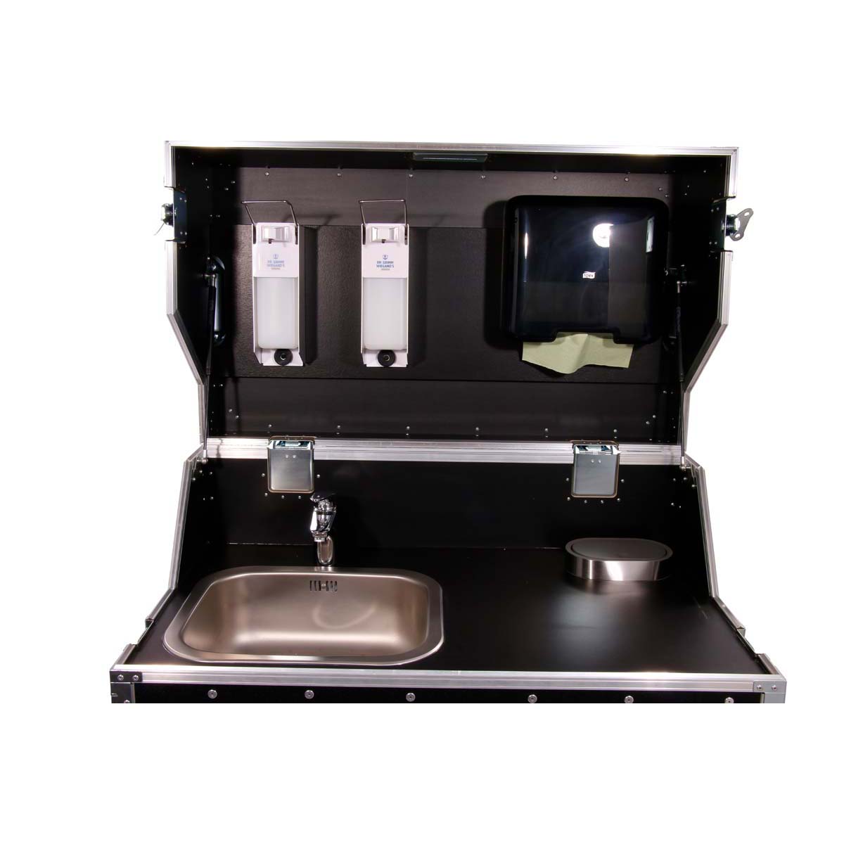 Mit Waschbecken, 2x Desinfektionsspender, Handtuchspender, Abfallbox & 1 Abfallbehälter