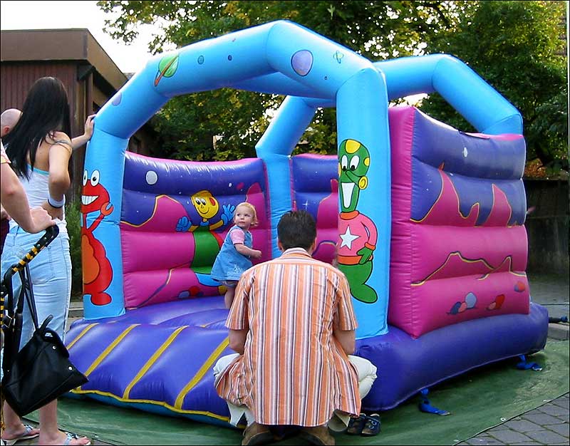 Die farbenfrohe Hüpfburg ist ein großes Abenteuer für die ganz Kleinen.